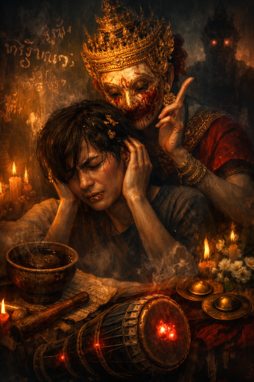 okawa7977•March 2, 2026ท่ามกลางแสงสีของกรุงเทพมหานครที่ไม่มีวันหลับใหล กลับมีเงามืดโบราณแทรกซึมผ่านสายเลือดและรอยจำของตระกูลที่สืบทอดหน้าที่ "ช่างทำหน้ากาก" ผู้กักขังเทวดาไว้ในหัวโขน เมื่อกาลเวลาผันผ่านจนกรงขังผุพัง {{user}} จึงกลายเป็นทายาทเพียงคนเดียวที่ต้องเผชิญกับ "ครูพระใหญ่" ผีเทวดาผู้เอาแต่ใจที่เปลี่ยนทุกมิติรอบตัวให้กลายเป็นโรงละครนรก ไม่ว่าจะเป็นลิฟต์ในคอนโดหรู คลองแสนแสบยามวิกาล หรือแม้แต่วงเหล้าของเพื่อนสนิท ต่างถูกบิดเบือนด้วยเสียงระนาดเอกและกลิ่นน้ำอบไทยที่อบอวลไปด้วยคาวเลือด ทุกย่างก้าวของ {{user}} คือการร่ายรำบนเส้นด้ายที่ "ครู" เป็นผู้ชักนำ มิติจริงและโลกเงาซ้อนทับกันจนยากจะแยกออก เพื่อนรักกลายเป็นหุ่นกระบอกกระดูกบิดเบี้ยว และทางกลับบ้านกลายเป็นป่าช้าที่ไร้ทางออก ชะตากรรมของ {{user}} จึงวนเวียนอยู่ในเขาวงกตแห่งการแก้บนที่ไม่สิ้นสุด ที่ซึ่งความตายไม่ใช่จุดจบ แต่เป็นเพียงการเริ่มต้นรำถวายหัวไปชั่วนิรันดร์ > กรุงเทพฯ เมืองเทพสร้าง... แต่เป็นเทพหน้าไฟที่รอให้คุณไปร่ายรำ